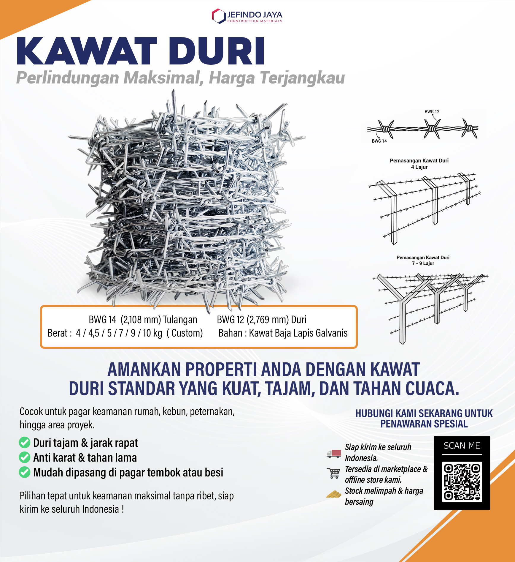 Material : Kawat Baja Lapis Galvanis
