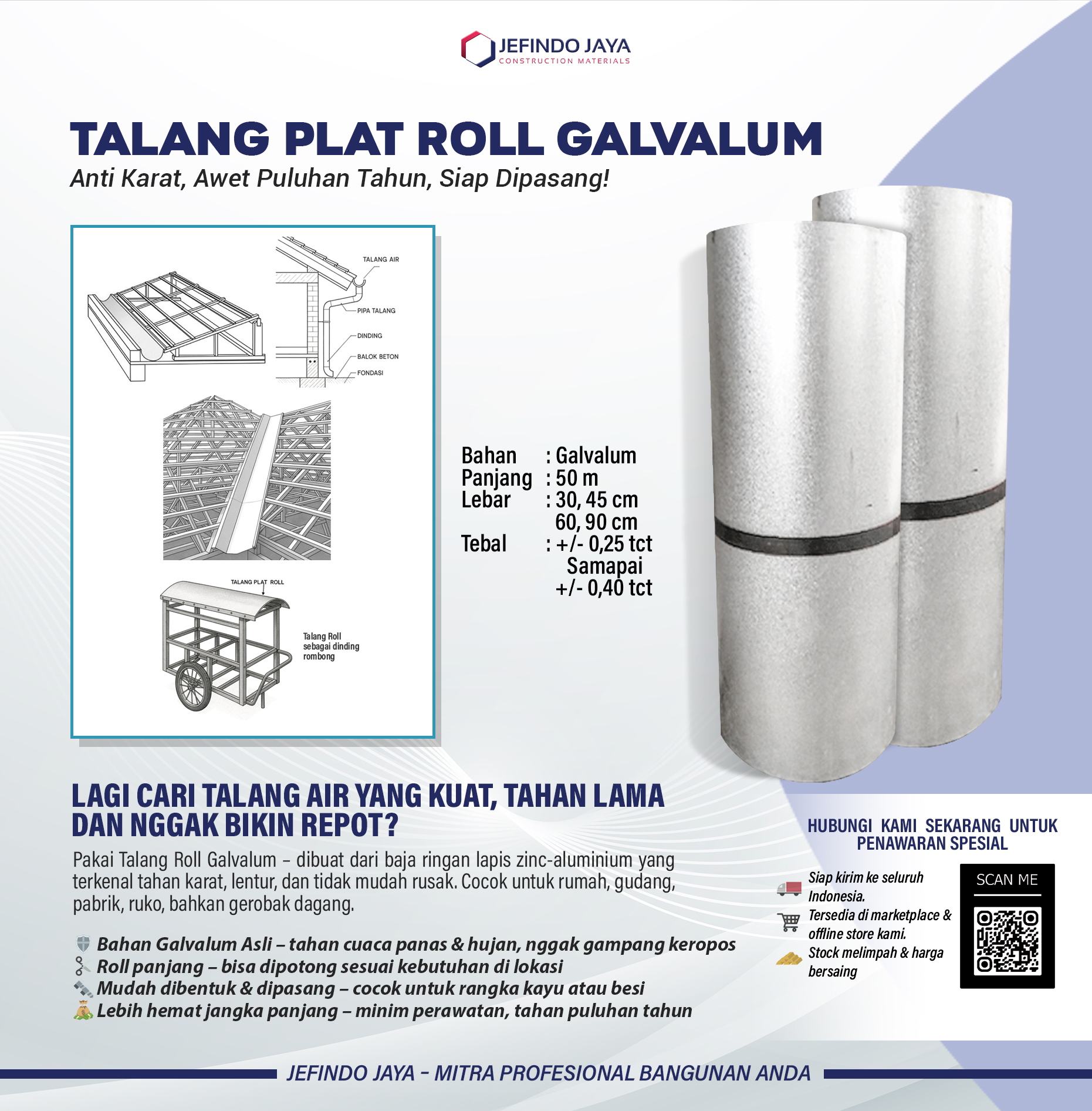 - Perawatan Mudah: Talang logam umumnya mudah dibersihkan dan memerlukan perawatan minimal.